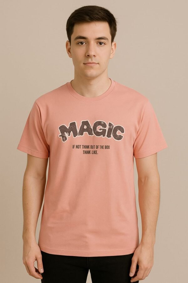 Crafted from premium quality Lykra fabric, this t-shirt provides a snug yet flexible fit that moves with your body. The Peach Pink color is both trendy and classy — making you stand out without going overboard.