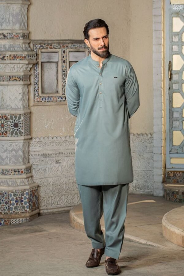 Elevate Your Traditional Style: Light Blue Kurta Shalwar for Men – Stitched & Unstitched Options Available for Summer & Winter